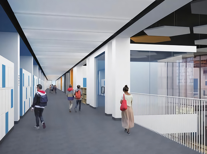北京师范大学盐城附属中学项目位于盐城经开区新都东路166号,总用地面积22.4万平方米,总建筑面积18.3万平方米,总投资10.6亿元。中航装饰承建该校初中、高中部项目室内装饰装修工程,项目总建筑面105087平方米,包含5层教学大楼,高度约24米,最大单跨37.2米。