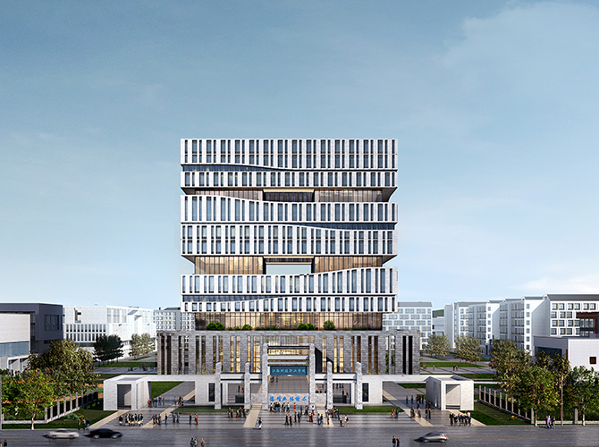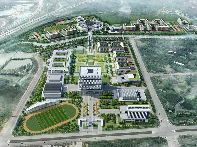 项目位于九江市八里湖南区科教园区内,总用地面积567932.5平方米,总建筑规模约为419960平方米,其中地上总建筑面积约388960平方米,地下建筑面积约31000平方米。建设内容包括教学楼、实训楼、图书馆、学生食堂、学生公寓、会堂、教工宿舍、体育馆等建筑工程。