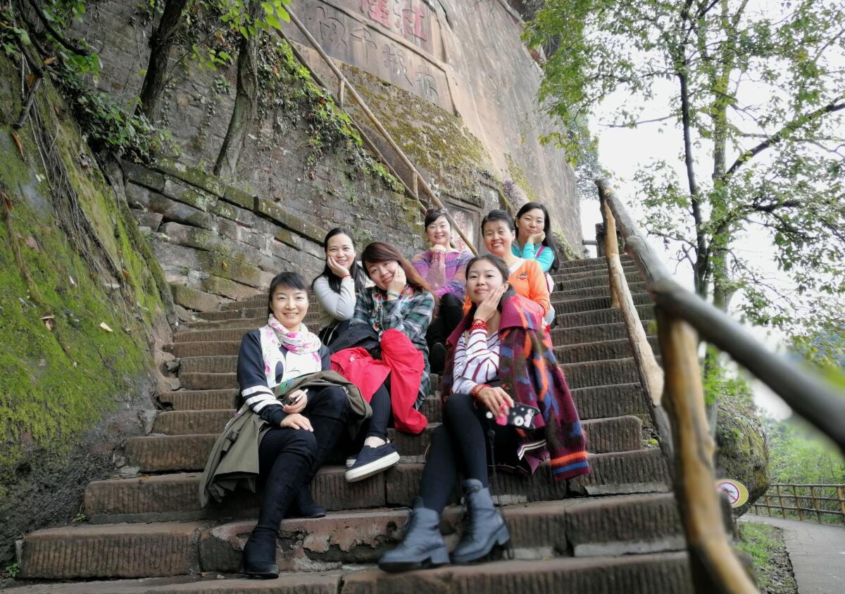 午饭后,大家兴致勃勃的去攀登丹霞山的最高峰—“长老峰”,此山峰以险峻著称,必须穿过众多近乎垂直耸立的陡峭山道和狭窄的一线天,虽然这里的山路极为崎岖、陡峭,处处是悬崖峭壁,但没有阻挡我们攀越高山的信心。登高望远,沿途观景,奇山秀水的美景尽收眼底,中航人迎难而上、努力拼搏的身影,成为了山间最美的风景。