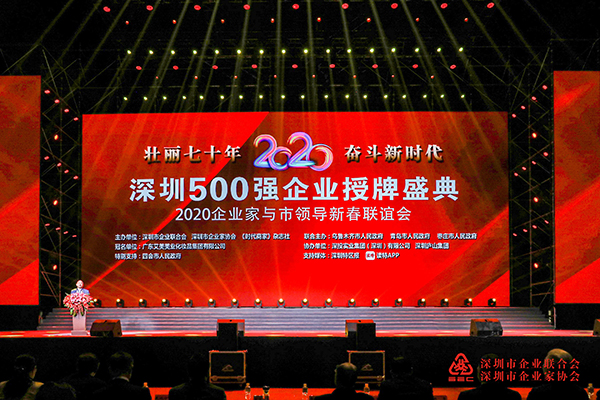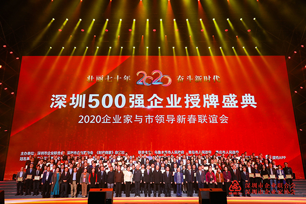 12月10日,由深圳市企业联合会、深圳市企业家协会、《时代商家》杂志主办的“壮丽七十年,奋斗新时代”深圳500强企业授牌盛典在深圳湾体育中心春茧体育馆隆重举行。