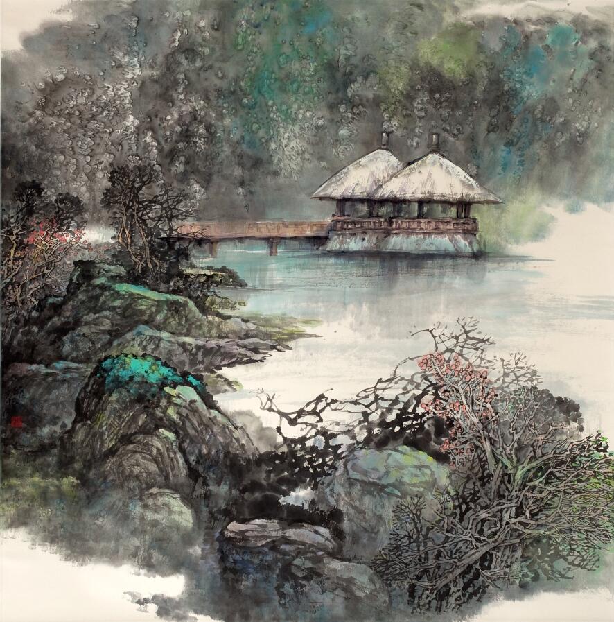 廖维章老师是中国美术家协会会员,中国国画家协会理事,江西科技师范大学教授,江西三山书画院院长,南昌市美协名誉主席,其作品多次入选全国美展,并获得各种奖项。曾编著出版《诗画山水》等专著及个人画集多部,2003年荣获“全国画院百佳画家”称号。几十年来笔耕不辍,探索于山水之间,其山水作品既有扎实的传统功底,又融入了现代艺术的装饰风格,注重山水画诗情意蕴的创造,画面沉着、厚实、宁静,给人以自然、清新、秀丽的新境界。