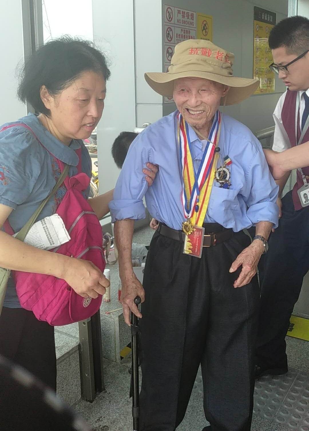 大清早,张中白爷爷已经穿戴好“抗战老兵绶带”等着志愿者带他出门参加互动。这位已经90岁高龄的爷爷,已提前知道今天可以和几位老伙伴会面畅谈过往,欢度佳节,所以,今天的他格外地兴奋。