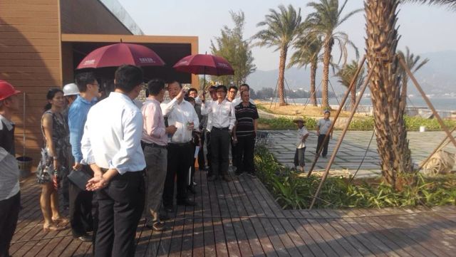 10月17日,花样年总裁潘军携集团高管团队视察龙岐湾项目。此项目是由花样年投资、我公司承建的大型地产项目,位于大鹏西冲。在我公司总经理孙玉东等人员的陪同下,潘军总裁不畏烈日高阳,对别墅区、体验馆、高层公寓样板房等施工地点进行详细的勘察;对现场施工材料的品质、现场施工组织的安全性及现场施工管理的合理性进行了考察。潘军总裁要求现场的工作人员加快工程施工进度,按最高目标完成各项工程建设任务。