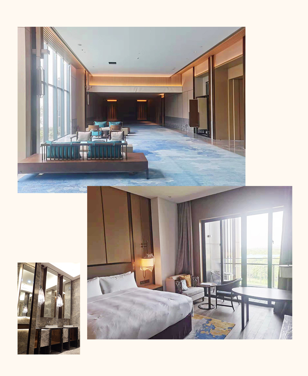 上海奉贤宝能希尔顿酒店位于上海奉贤区美丽的青村申隆生态园区的申隆湖畔,是一座总体规模达到8.3万平米的超五星级商务度假型酒店。该酒店由宝能集团投资建设,由专注打造酒店及度假村的国际设计公司 Blink Design Group 主理设计。中航科建承建宝能希尔顿酒店整体装饰装修工程,工程造价1.3亿元。