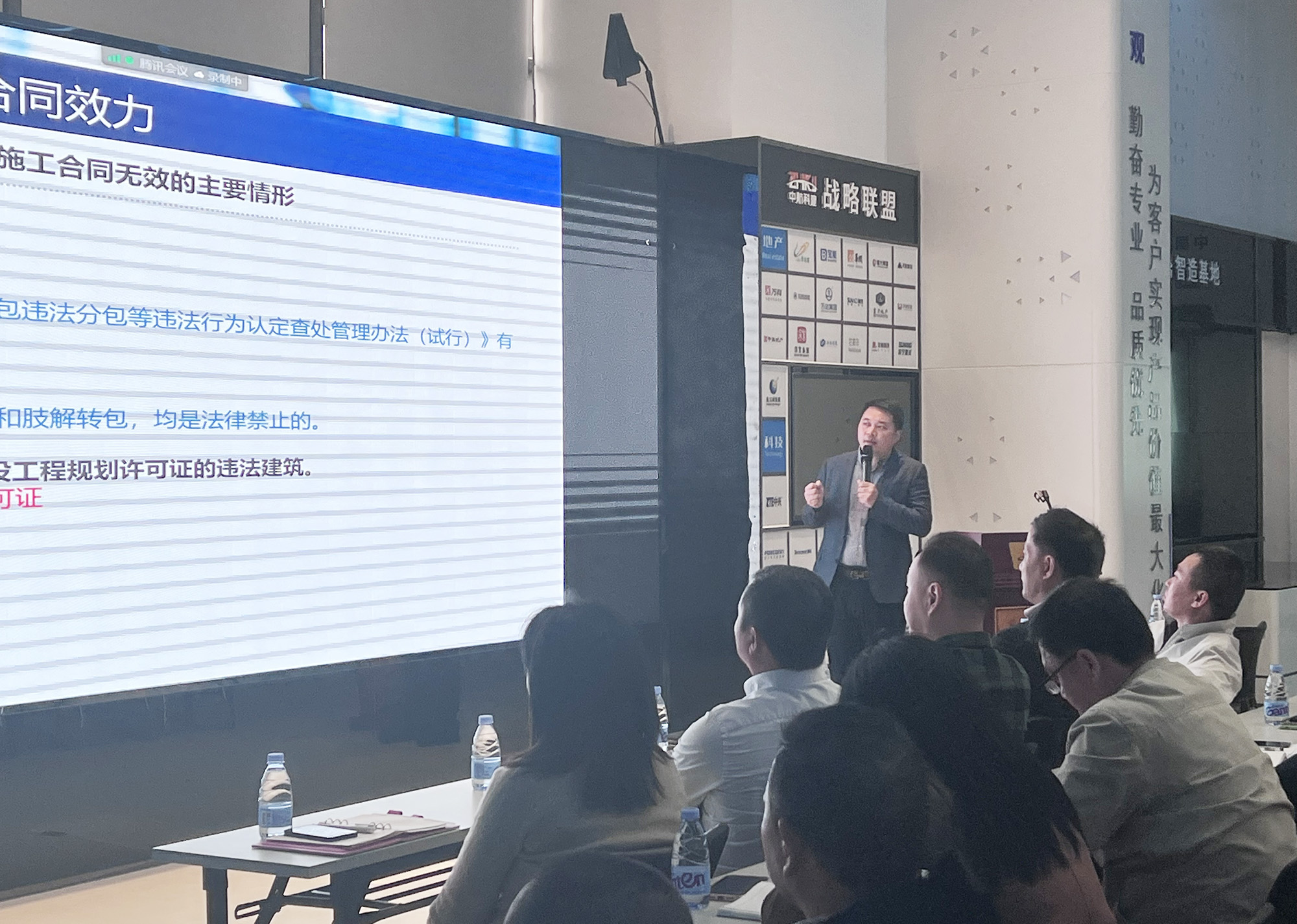 此次培训邀请了深圳广和律师事务所黄伟律师以建筑行业法律实务及工程管理风险防范为主题,对从合同签订与生效、合同管理到履行过程中的操作和风险防范,以及与建筑行业相关的重点法律规范等多方面内容进行了详细讲解,并结合公司实际工作,深入浅出地将晦涩难懂的法律条文和实际案例相结合,由案说法、以法析案,通俗易懂地介绍了工作中可能会遇到的相关法律知识,对日常工作中经常涉及的法律问题,应防范的法律风险进行了细致分析,为大家就如何防范经营法律风险、合规风险等公司治理中的重点问题上提供了有效指导。
