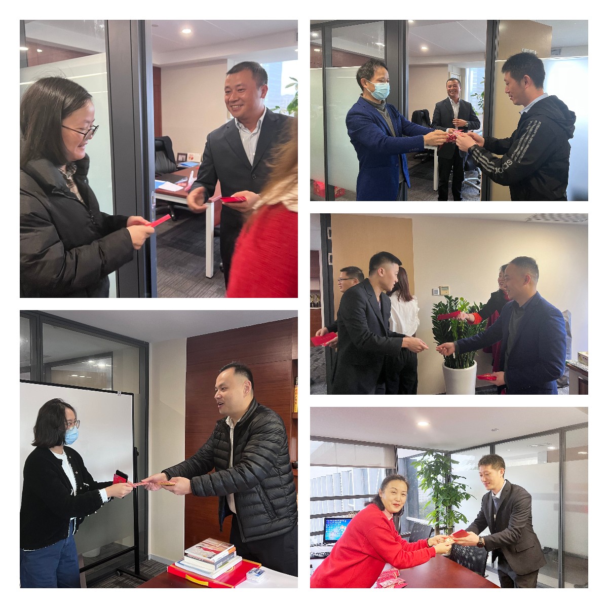 同事们穿梭在办公室间向集团领导和各部门同事拜年, 用自己的方式向大家传递着新年的祝福。