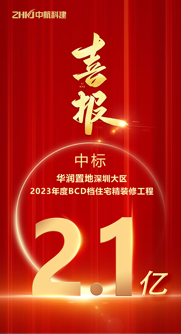 近日,中航科建再传捷报,成功中标华润置地深圳大区2023年度BCD档住宅精装修工程,项目包括深汕半山润府、光明区华润润曦府、光明区华润润晖府、宝安区润峯云上府等精装修工程,中标总金额约2.1亿元。