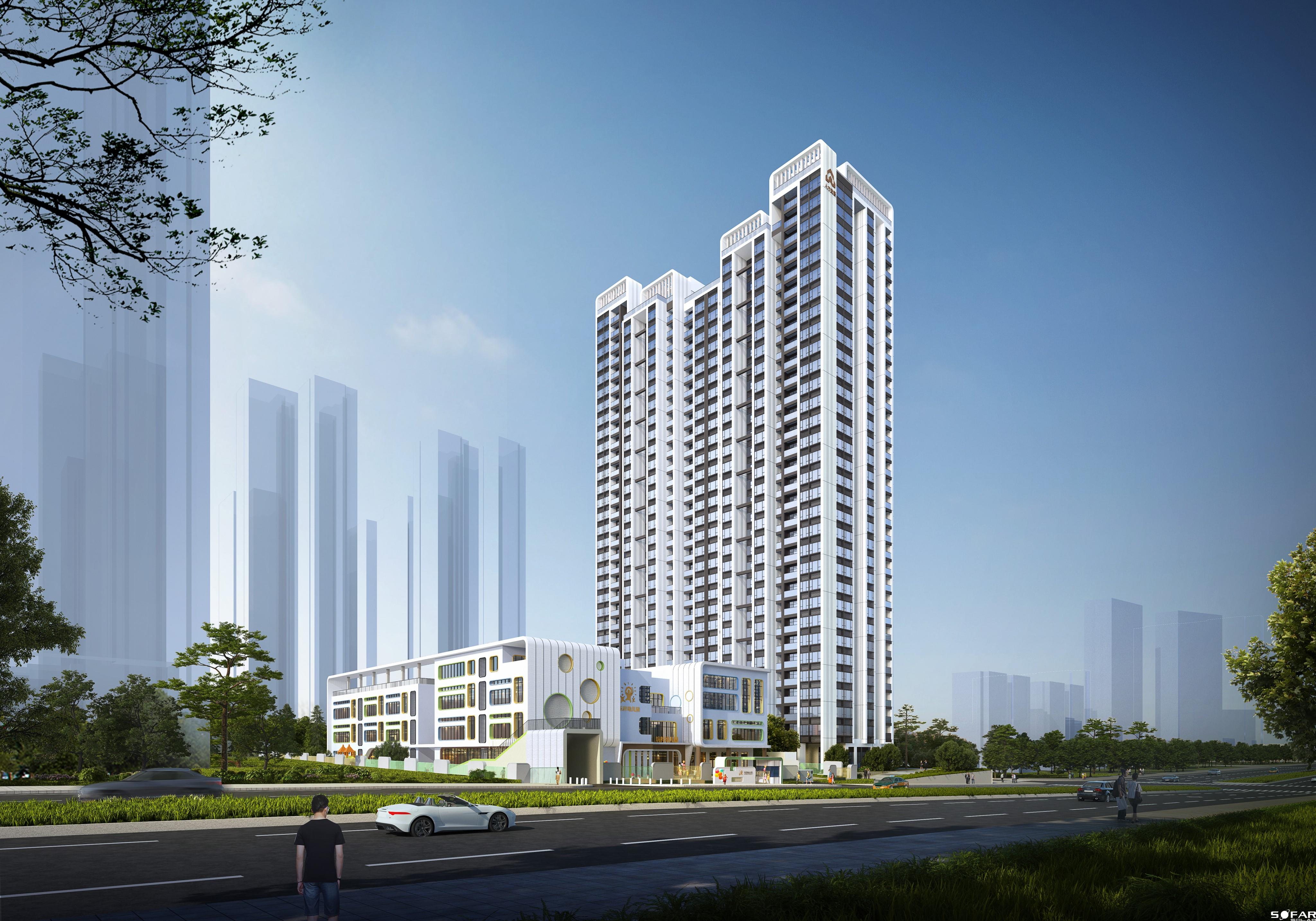 安居秀景苑项目是人才安居集团将在坪山全力打造安居工程示范品牌。住宅为两个塔楼单元拼接,合理运用空中花园体系,打造全方位的舒适、绿色健康的生活环境,外立面设计语言现代简洁。幼儿园以围合式布局建立,巧妙搭配高差及周边全方位景观设计,流线型外立面为学生带来生动活力的教育环境。