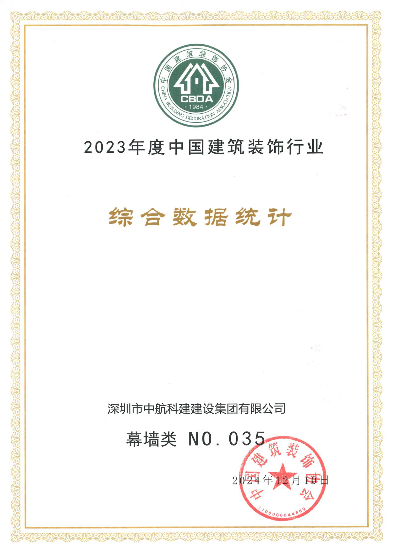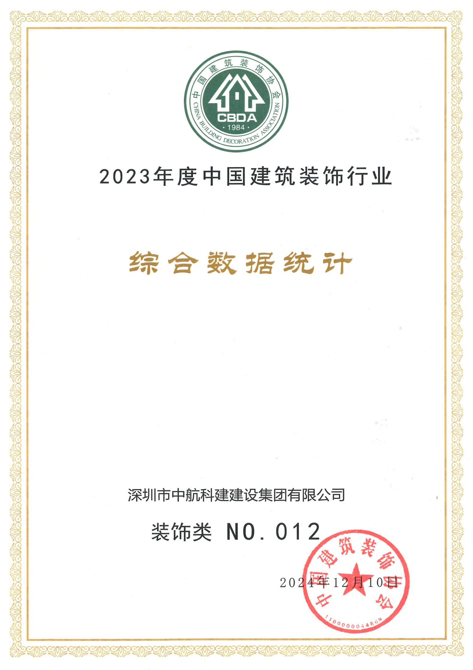 2024年12月10日,中国建筑装饰协会在北京召开九届四次理事会、九届六次常务理事会暨中国建筑装饰协会成立40周年大会,同期发布了“2023年度中国建筑装饰行业综合数据统计”。