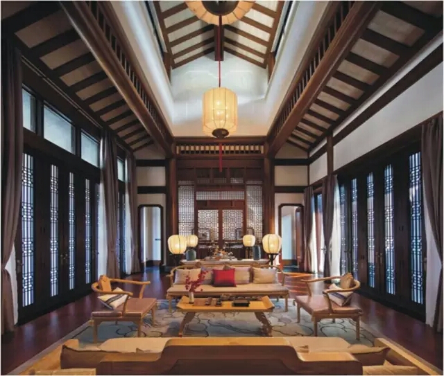 其中最具中国传统建筑韵味的非我公司承建的“东坡馆”莫属,“东坡馆”伫立在山水间,以错落有致的坡屋顶、富有中国传统建筑韵味的山墙、木构等元素,共同营造出一个东方意境的世外桃源,其采用内庭院将各功能空间分成单元,可拆分亦可组合使用,重现中国传统建筑装饰的空间序列感,风雅别致的风格令每位客人都为之沉醉。馆内由大学士餐厅、风雅堂、阳春厅、白云厅、高山厅、流水厅,豪放阁、婉约阁及赋诗台、比诗台、与兴诗台组成,紧邻龙珠湖而建。可约三五好友,在此凭栏而坐,品珍馐美味,谈诗意人生,看月影微澜,美不胜收。