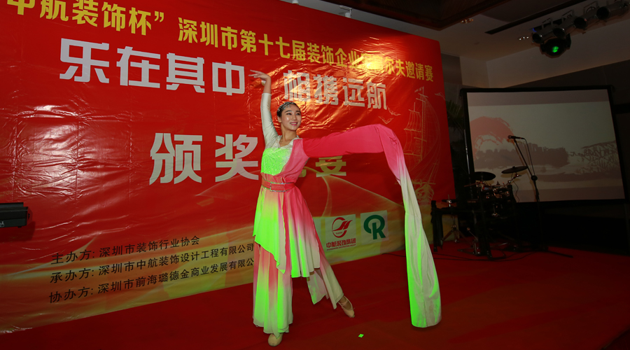精彩的比赛结束后,热闹友好的气氛一直延续到晚上,大家欢聚一堂,颁奖晚宴在精彩的节目表演中开始。深圳装饰行业协会会长高刚致辞盛赞此次邀请赛的成功,对前来参与的行业精英表示感谢和对获奖者表示祝贺,并就此次装饰行业“营改增”政策应对问题做了分析与强调。接下来,在欢歌笑语中颁发了本次赛事的各项奖杯与奖品,其中激动人心的抽奖环节更是将晚宴气氛一次一次的推向高潮。