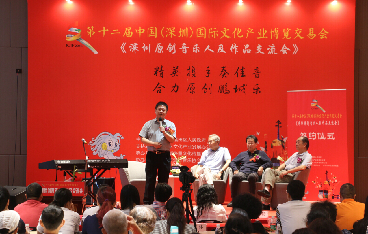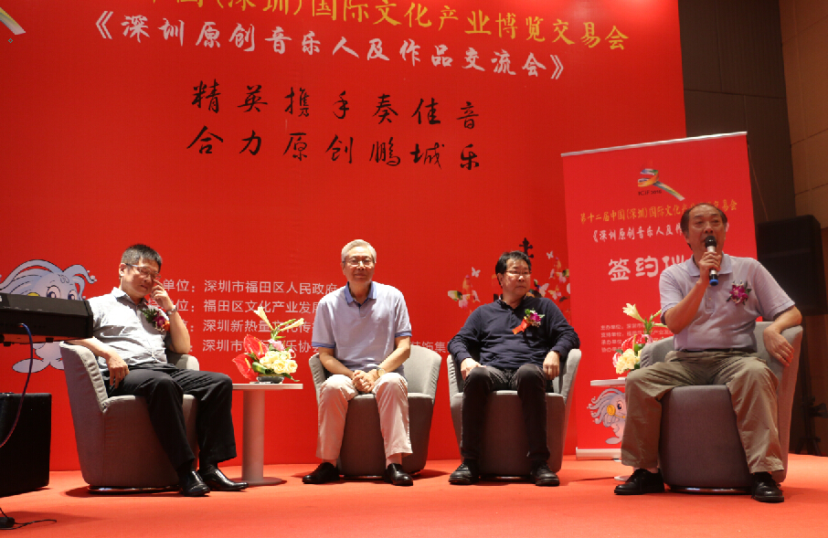 2016年5月12日,第十二届中国(深圳)国际文化产业博览交易会专项活动《原创音乐人及作品交流会》在中航装饰集团的多功能厅隆重开幕。深圳大学金钟音乐学院院长杨士春教授;深圳音乐家协会主席姚峰教授;著名音乐制作人、作曲家许建强先生;著名音乐制作人、词曲作家付林教授;新加坡音乐美学博士张泛教授;中航装饰集团董事长石英先生,以及全国各地的原创音乐人、音乐爱好者共一百多人出席了本次开幕式。
