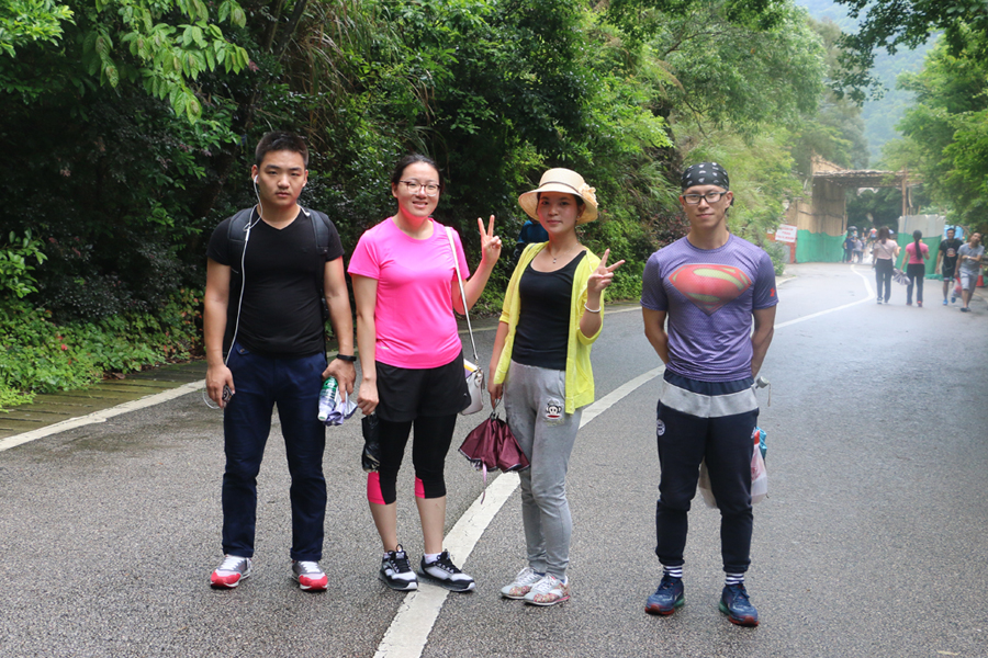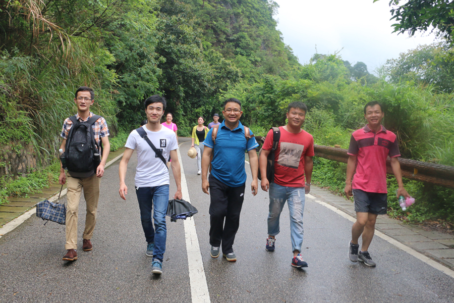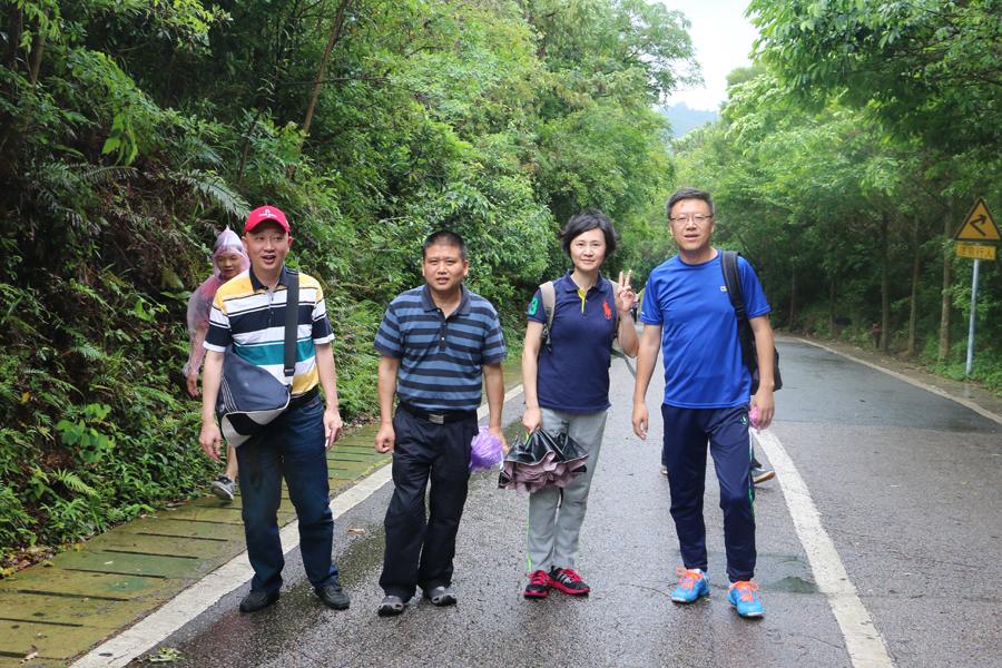 首夏犹清和,芳草亦未歇。深圳的五月,阳光正好,微风不燥。中航装饰集团的小伙伴们就在这惠风和畅的天气里向深圳最高峰——梧桐山发起了挑战。虽然上午刚到山底就飘了点小雨,但大家登山的热情不减,情绪高昂。石英董事长更是一马当先,带领大家沿着逶迤盘旋的山路,穿过荫翳的林木,向山顶一路攀登。虽然道路曲折漫长,但是沿途风景优美,为增加本次活动的趣味性与挑战性,我们更是事先在沿途放置了一些卡纸,在活动中增加了“寻宝”游戏,让大家在爬山的过程中,体会寻宝的乐趣。大家乐此不彼,在不断寻找的过程中似乎也忘记了一路攀登的辛苦。一路上,大家相互扶持鼓舞,以坚定的信念、顽强的毅力不断往上攀登,挑战每一个台阶,每一段路途,朝着山顶目标勇敢的前进。当站在鹏城第一峰的山顶,迎着晨晖,眺望远方,因天气原因,能见度不高,少了海阔天空,一览众山小之感,但颇有凤兮来仪、飘飘欲仙之意。稍事休息后,我们就开始下山了,下山途中大家也是互相扶持,秉持着不落下一个队友的原则,顺利返回山底,在山底的农家乐餐馆用了晚餐。